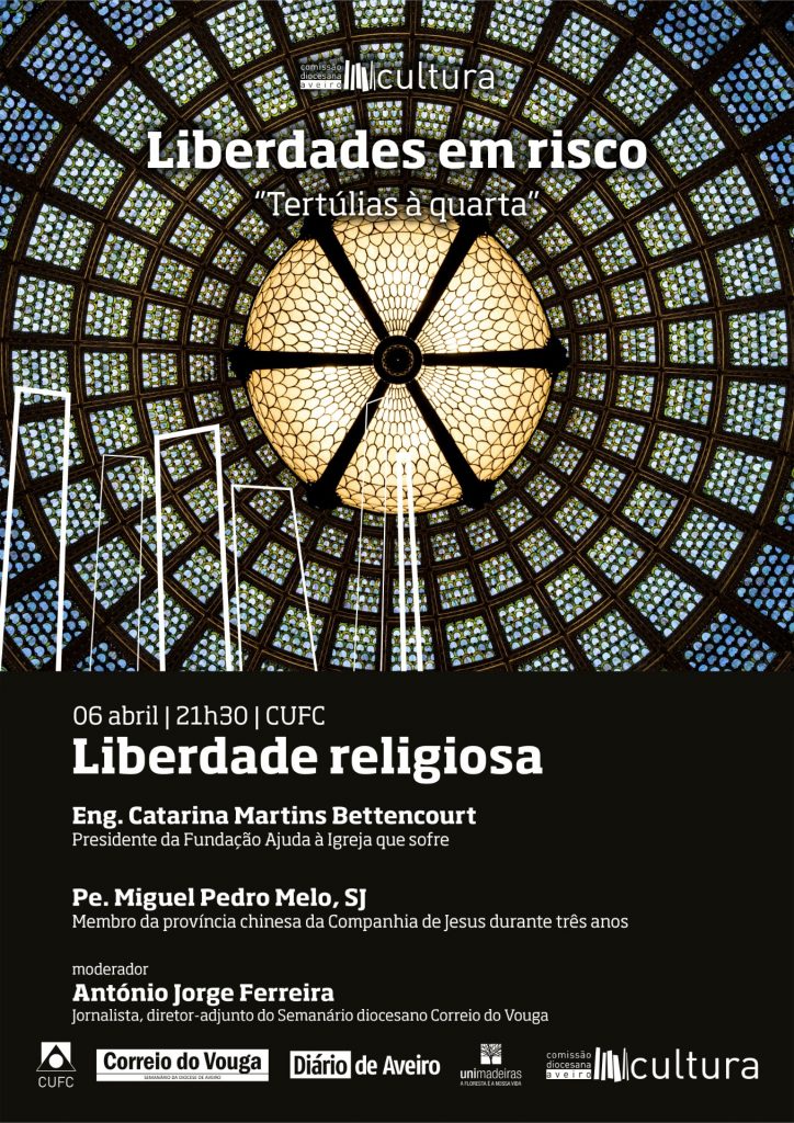 Liberdade religiosa será a primeira, já a 6 de abril, com a Presidente da Fundação Ajuda à Igreja que sofre, Eng. Catarina Martins Bettencourt, e o Pe. Miguel Pedro Melo, Jesuíta membro da Província chinesa durante 3 anos.