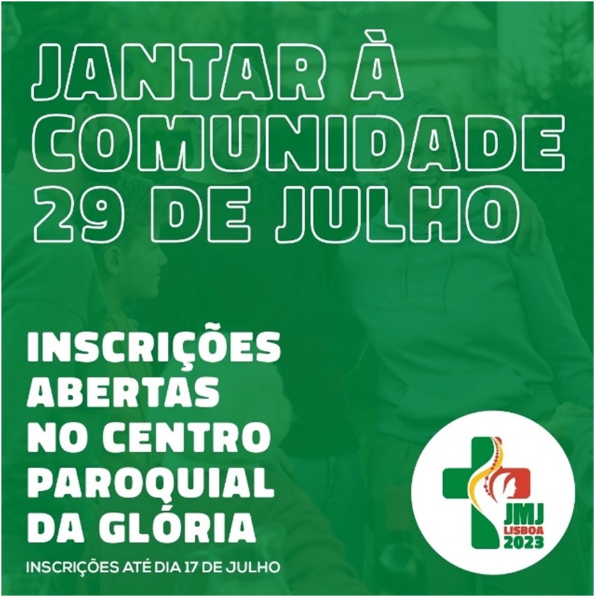 O jantar inclui sopa, prato principal, sobremesa e animação e pedimos um contributo de 2,5 JMJ por pessoa.