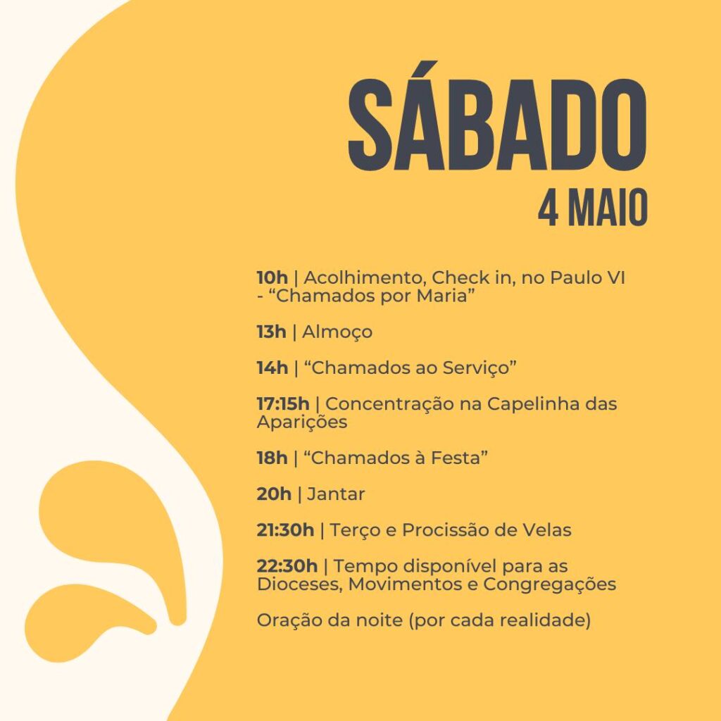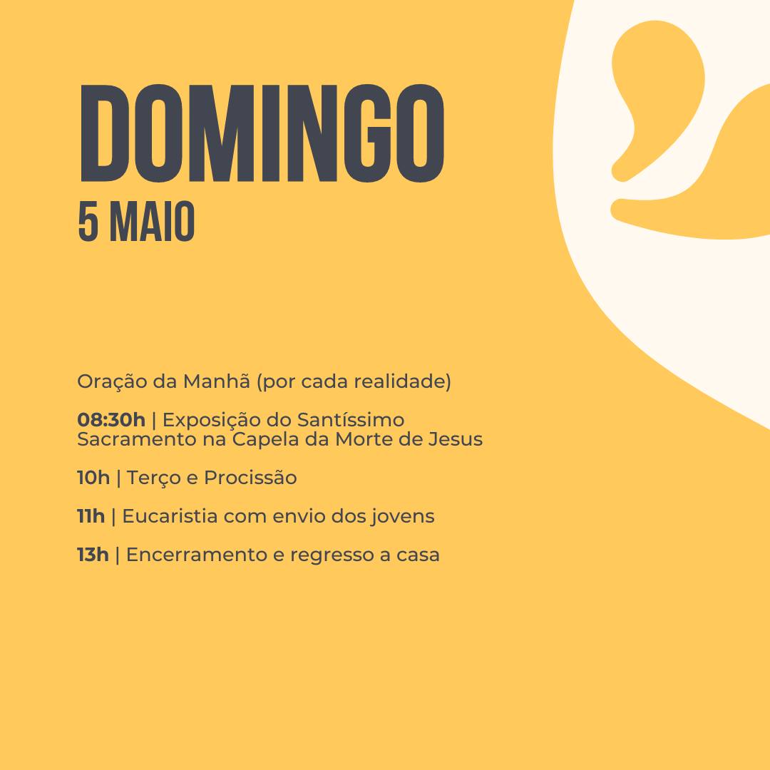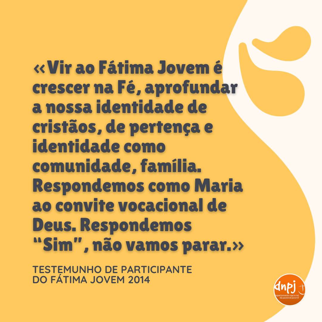 É ainda possível inscreveres-te para o FÁTIMA JOVEM 2024, que decorrerá em Fátima no fim de semana de 4 e 5 de Maio, este ano com o tema “Chamados ao Encontro”.