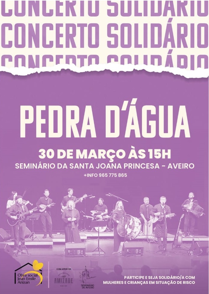 É já no próximo Domingo, dia 30 de Março, pelas 15h00, no Seminário de Santa Joana Princesa – Aveiro, que irá decorrer um Concerto Solidário, com o grupo “Pedra D’Água”.