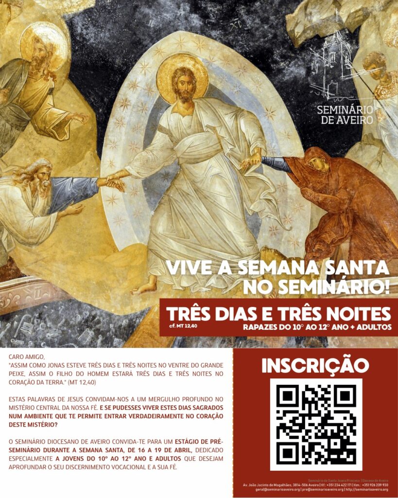 O Seminário de Aveiro convida [do 7º ano ao 12º ano e adultos] para “viver a Semana Santa de uma forma completamente nova.”