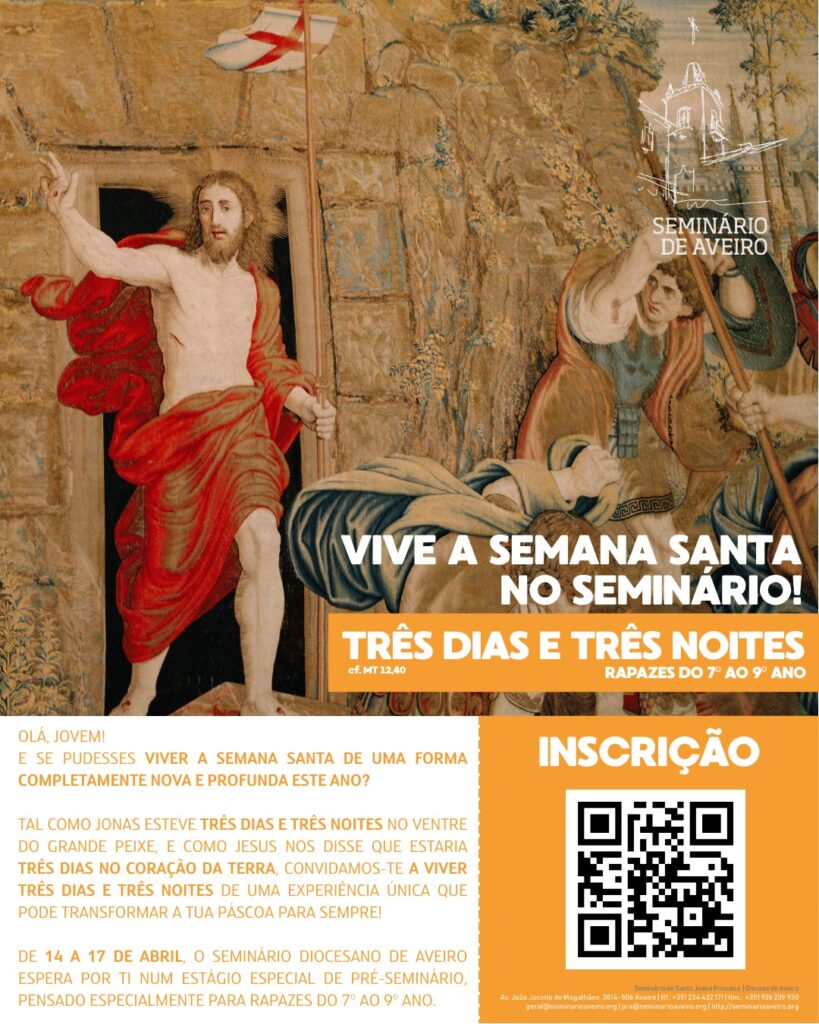 - De 14 a 17 de abril, o Seminário Diocesano de Aveiro espera por ti num estágio especial de Pré-Seminário, pensado especialmente para rapazes do 7º ao 9º ano.