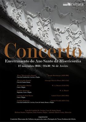 Ainda no contexto do encerramento deste Jubileu que o Papa Francisco convocou está marcado para o próximo sábado, dia 12, às 21h30, um concerto sob a direcção de António Mário Costa com João Santos ao órgão, a soprano Helena Santos e com os Coros da Catedral de Aveiro e de Santa Joana.
