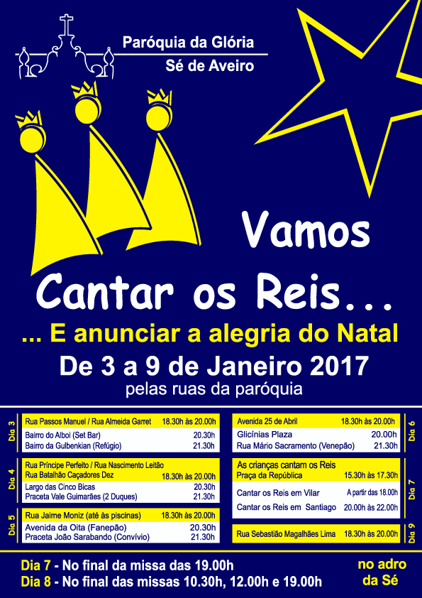 Também cantaremos os reis no adro da Sé no final das missas do dia 7 e 8.