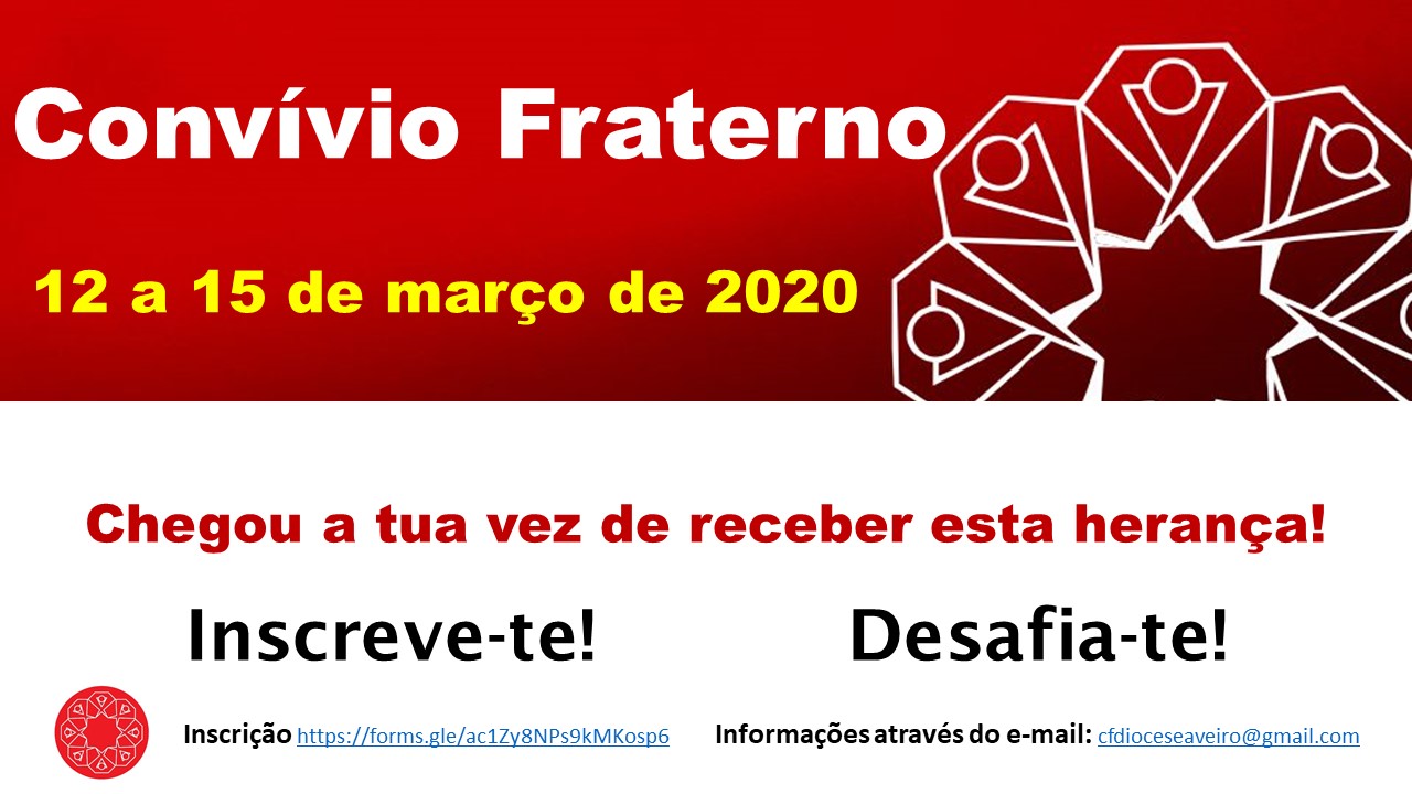 O próximo Convívio Fraterno na Diocese de Aveiro realizar-se-á na Casa da Sagrada Família (Praia de Mira), nos dias 12 a 15 de março de 2020.
