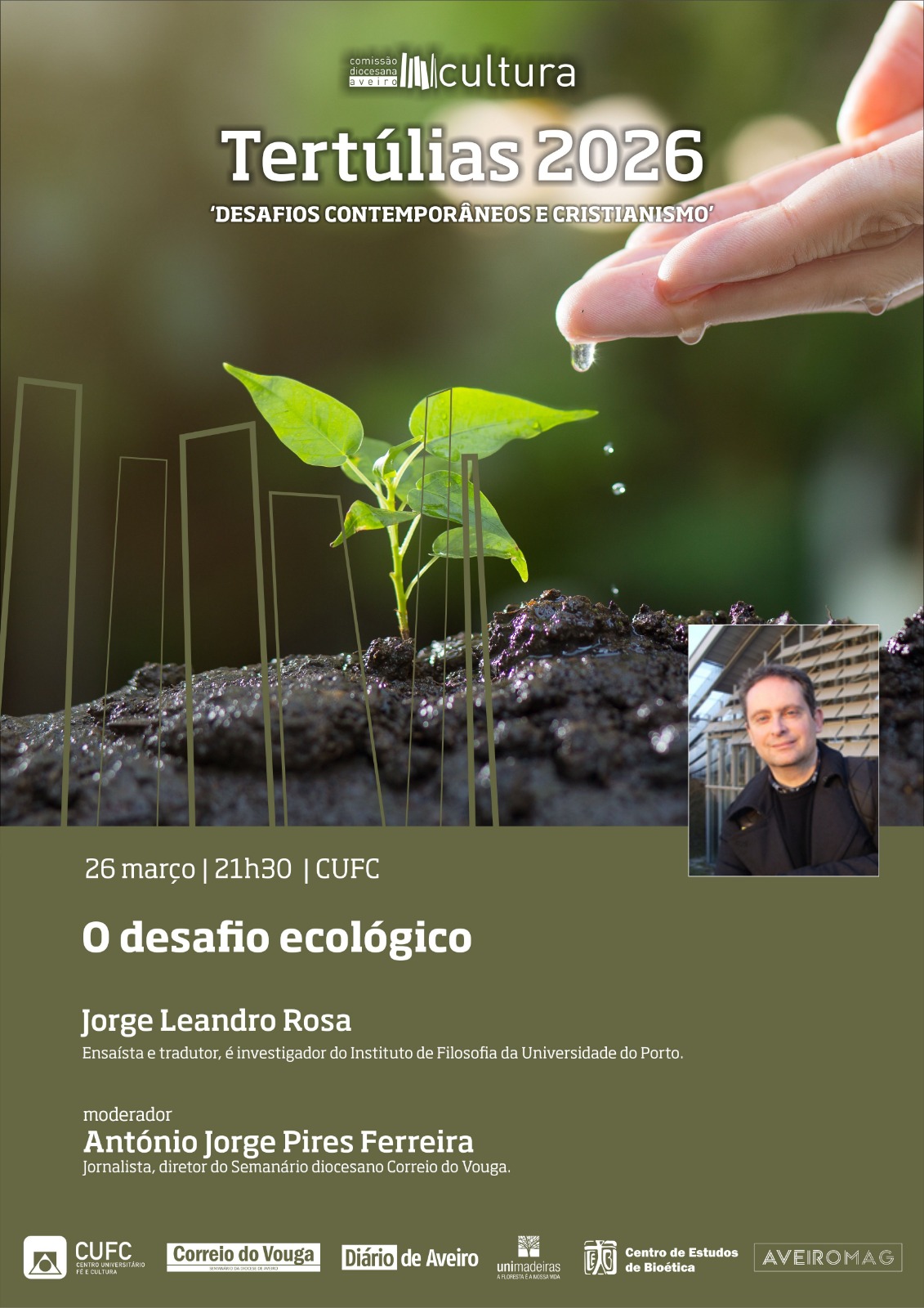 O convidado será Jorge Leandro Rosa, ensaísta, tradutor e investigador do Instituto de Filosofia da Universidade do Porto e o moderador desta conversa sobre «O desafio ecológico» será o António Jorge Pires Ferreira. A participação é livre.