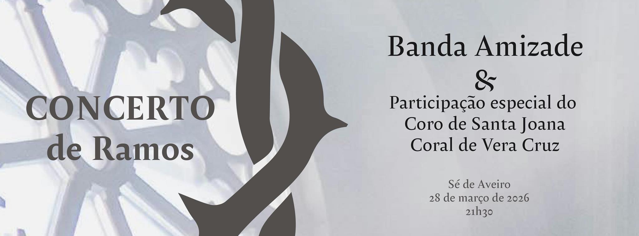 A Banda Amizade, e com a participação especial do Coro de Santa Joana e do Coral Vera Cruz, realiza no sábado dia 28 de Março, na Sé, pelas 21h30, um Concerto de Ramos. A Entrada é Livre.