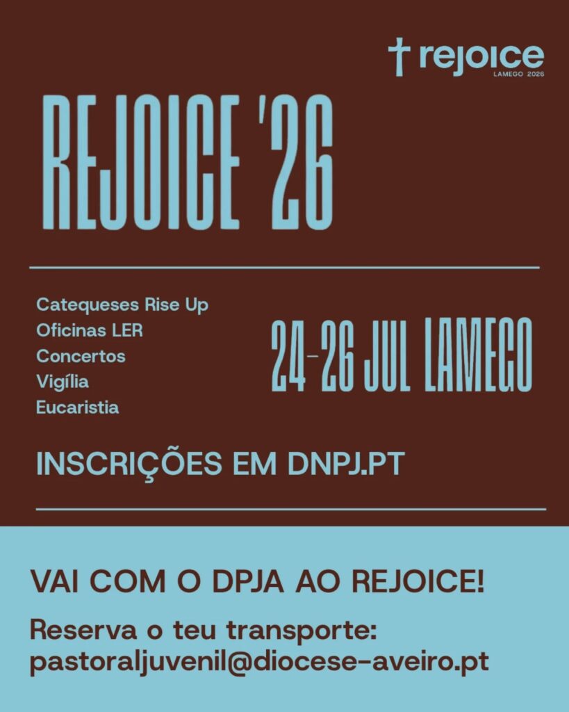 Já abriram as inscrições para o ‘Rejoice’ 2026, a Jornada Nacional da Juventude que vai decorrer de 24 a 26 de julho, em Lamego. Os Jovens são convidados para um encontro nacional que pretende celebrar a fé, fortalecer a comunhão e renovar a esperança da juventude da Igreja em Portugal.