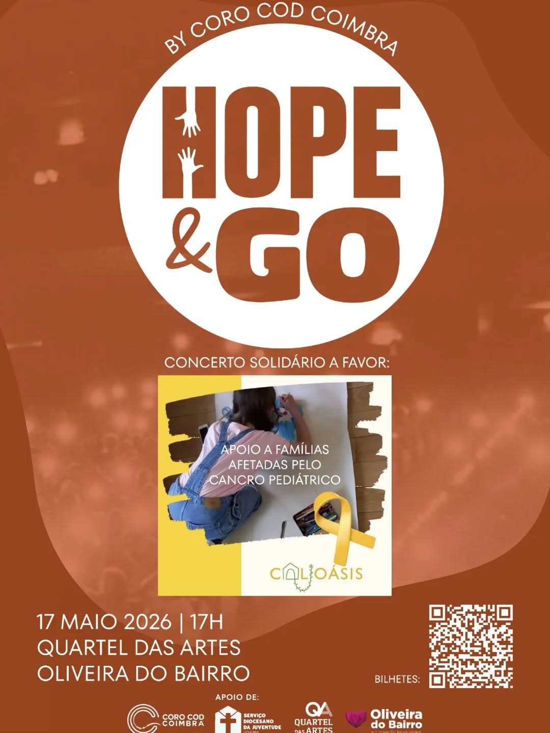 No próximo dia 17 de Maio, às 17h, no Quartel das Artes em Oliveira do Bairro, com a iniciativa “Hope & Go” da Banda COD COIMBRA e do P. JOÃO PAULO VAZ a favor da Calioásis.
